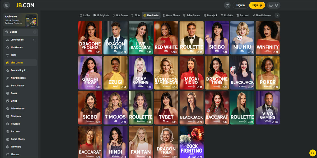 Live καζίνο Live καζίνο Παιχνίδια καζίνο σε πραγματικό χρόνο που μεταδίδονται από επαγγελματικά στούντιο ή φυσικούς χώρους, με ζωντανούς ντίλερ και διαδραστικά επιτραπέζια παιχνίδια.