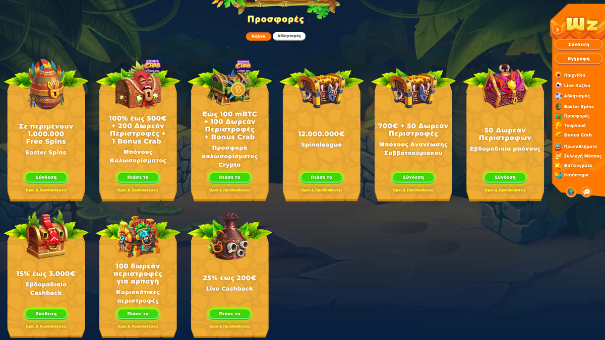 100%/έως €500 + 200 Δωρεάν Περιστροφές + 1 Bonus Crab